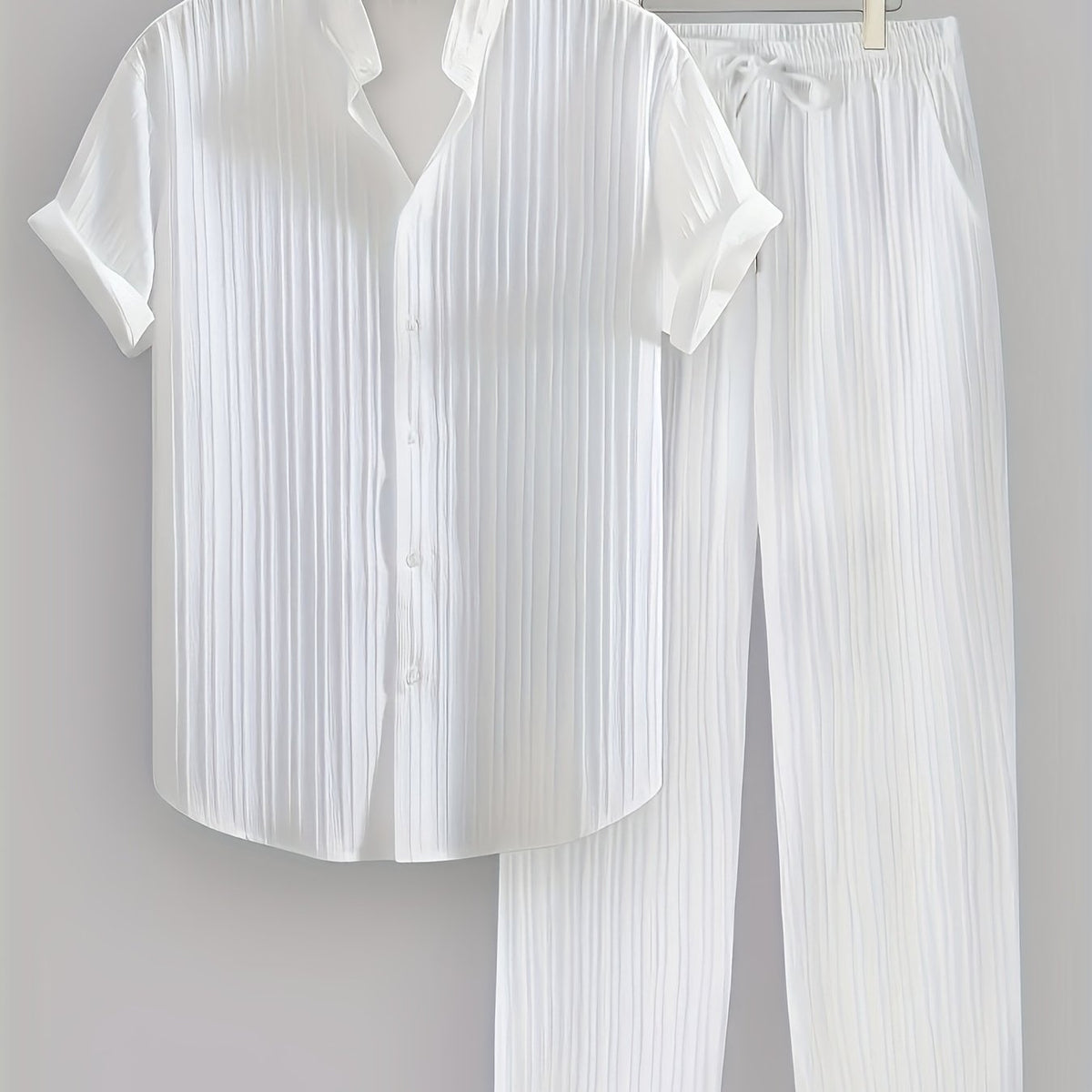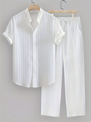 Inform when this item available Men'S Summer Casual 2-Piece Striped Polyester Set