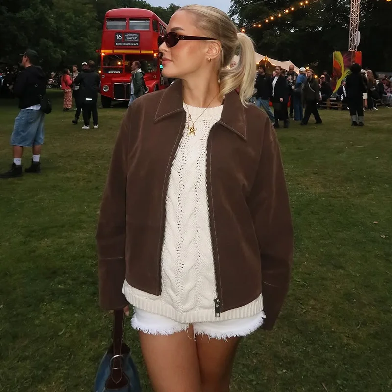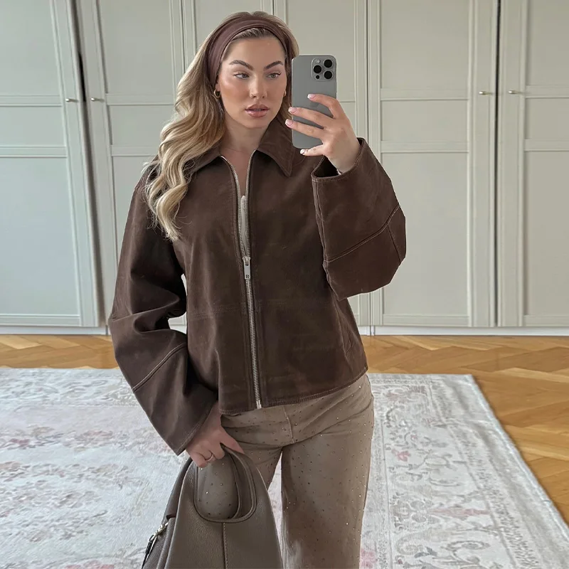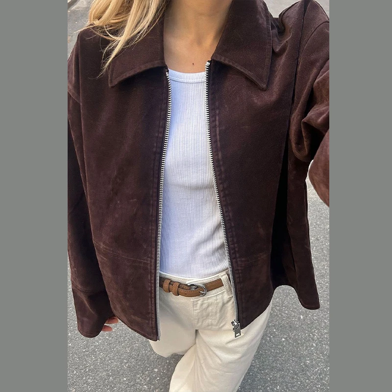Premium Brown Loose Fit Suede Street Outwear Jacket