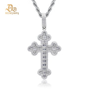 Delzzad 100% S925 Sterling Silver Moissanite Plant Petal Cross Pendant Unisex Shiny High-end Luxury Jewelry Anniversary Party