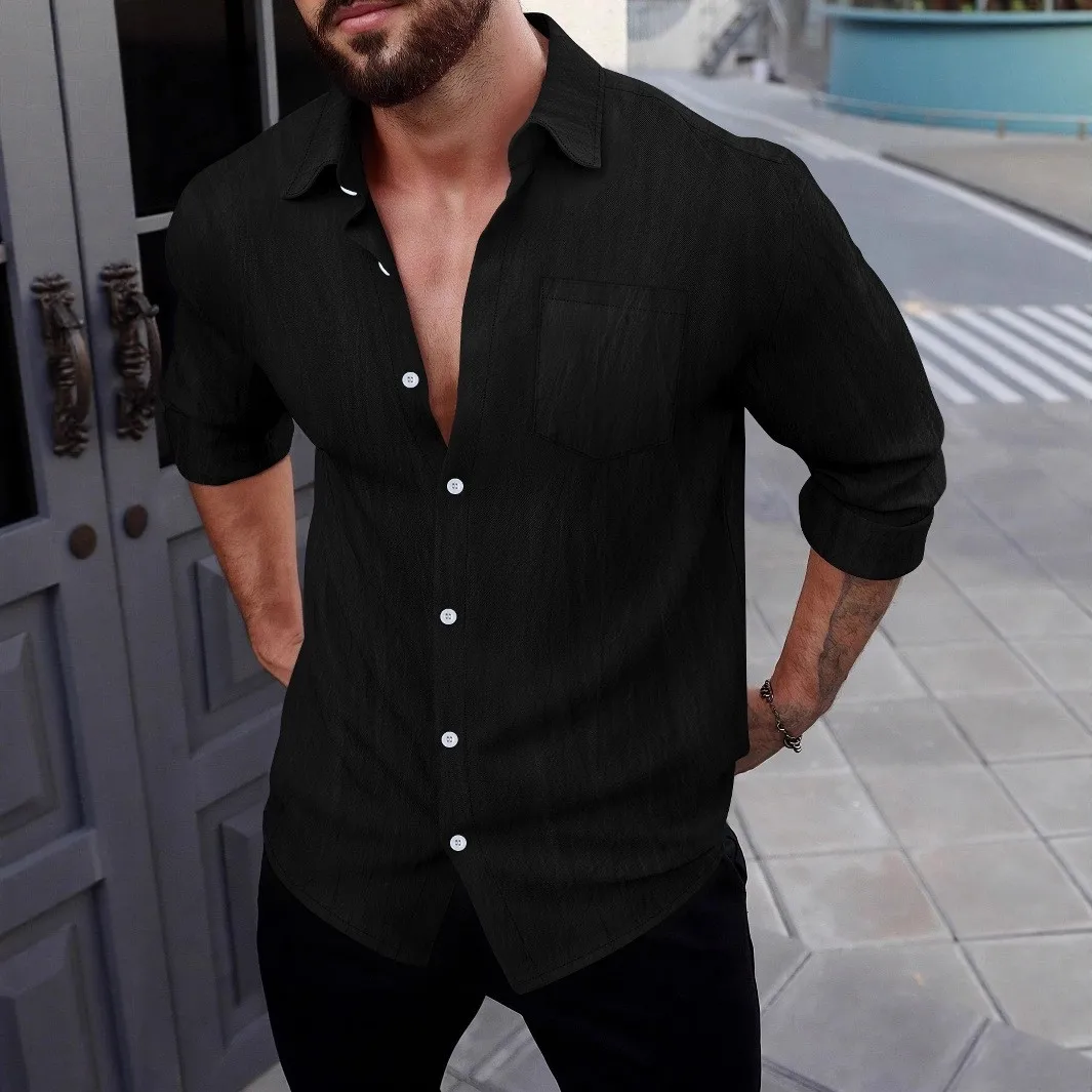 2025 Autumn New Style Men's Casual Daily Plain-Colored Button-Up Long-Sleeve Shirt Men's Clothing