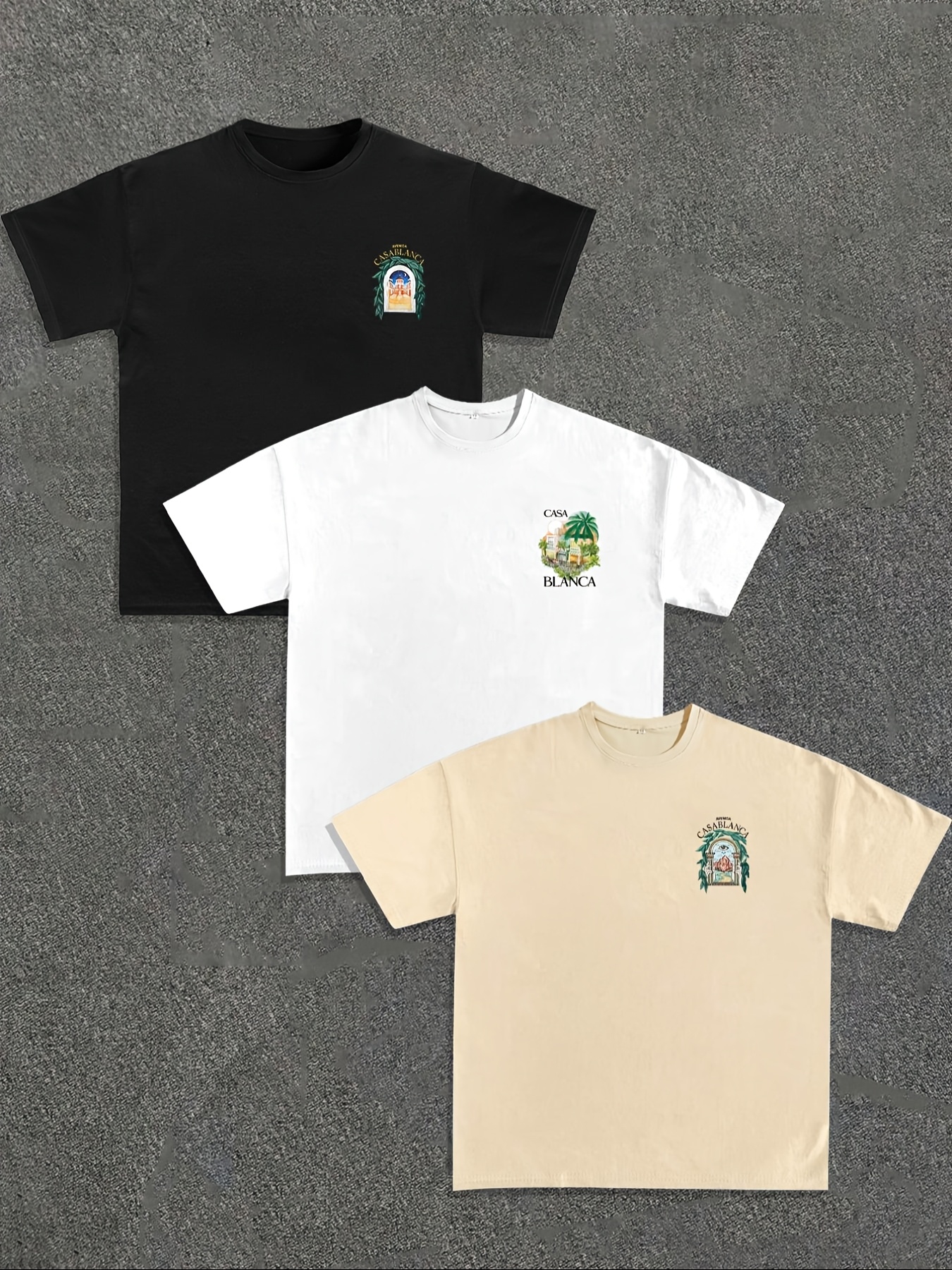 3pcs Men's Casablanca Casual Short Sleeve T-Shirts