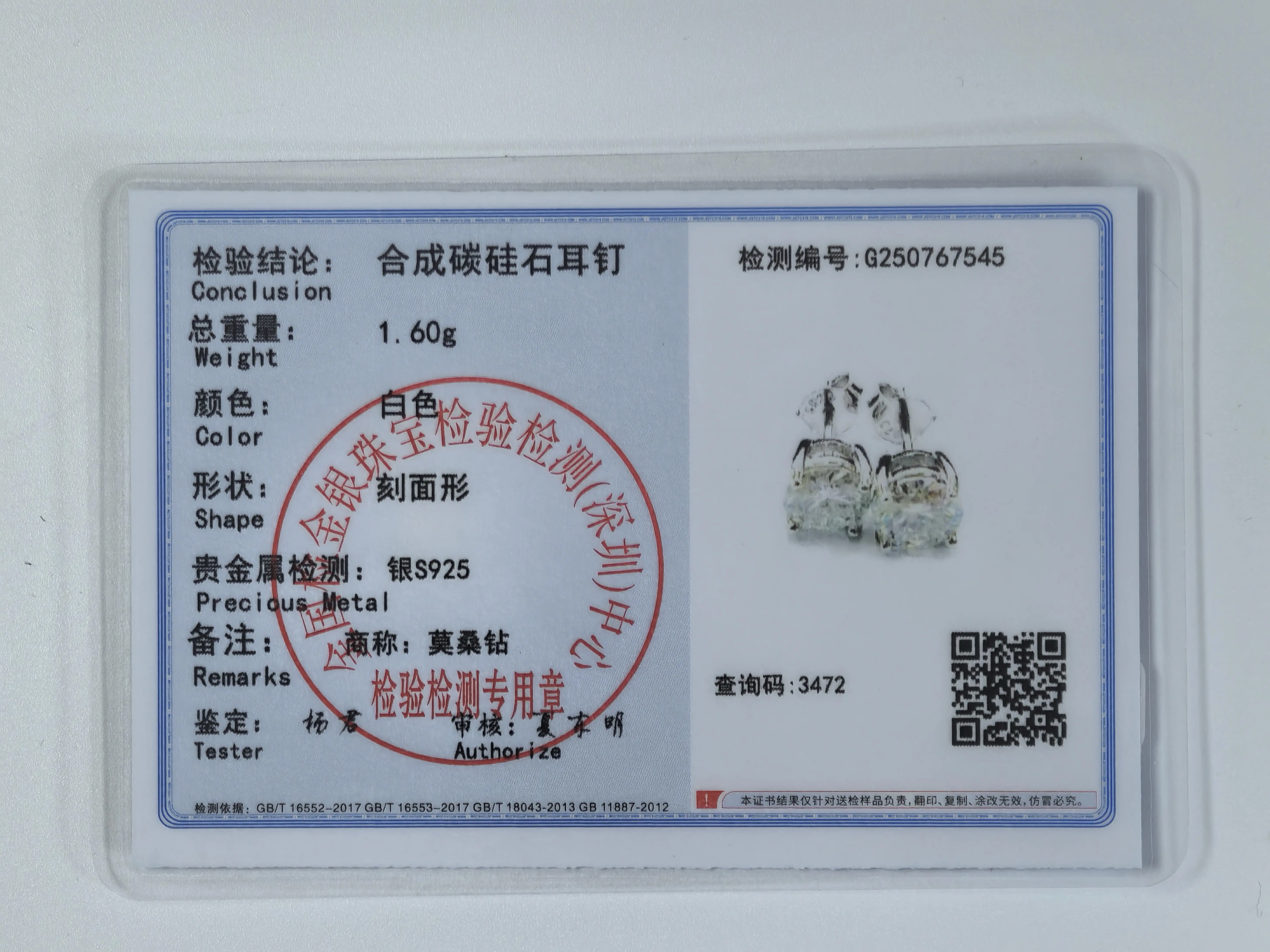 100% 925 Sterling Silver 0.1-3 Carat D-Color Moissanite Earrings for Men and Women
