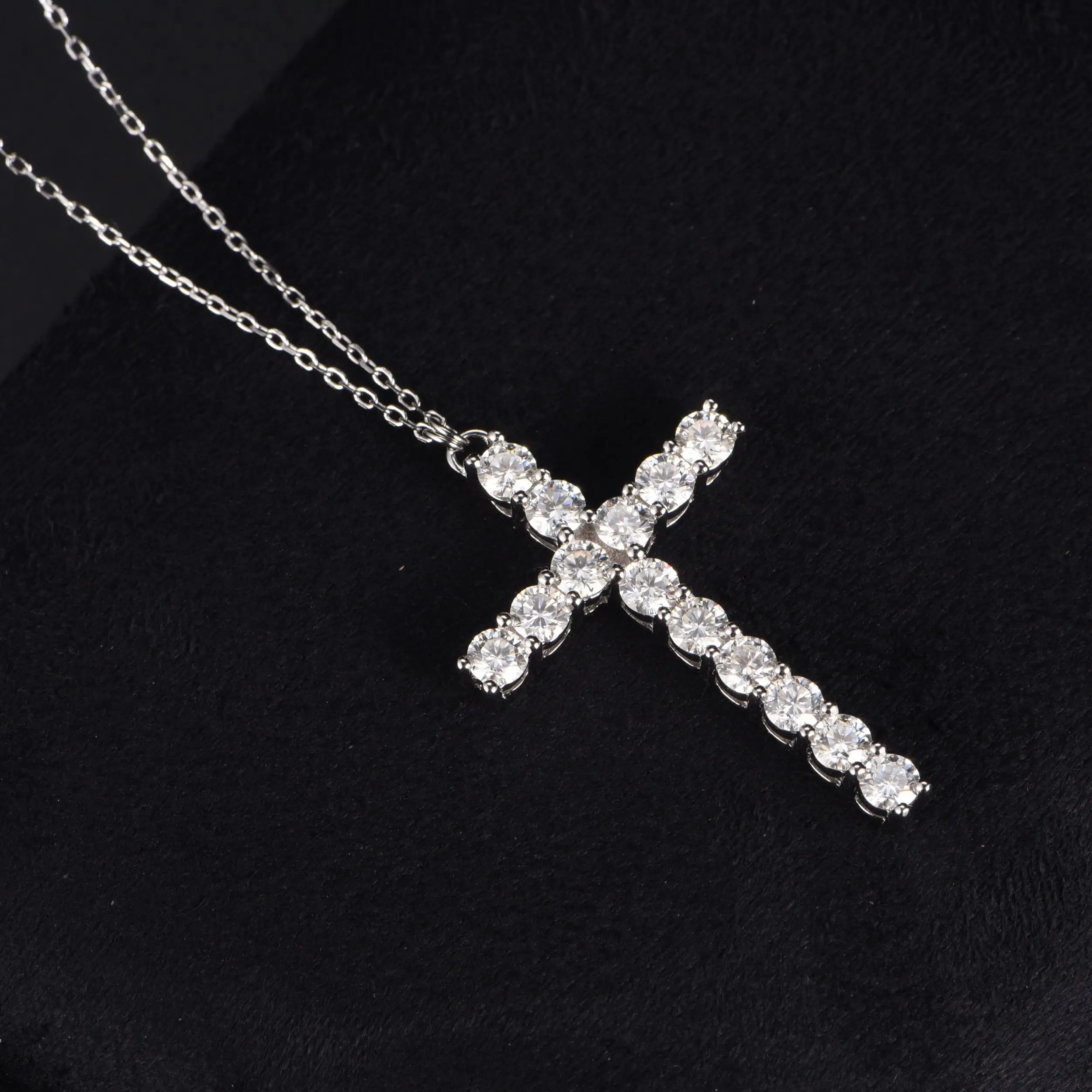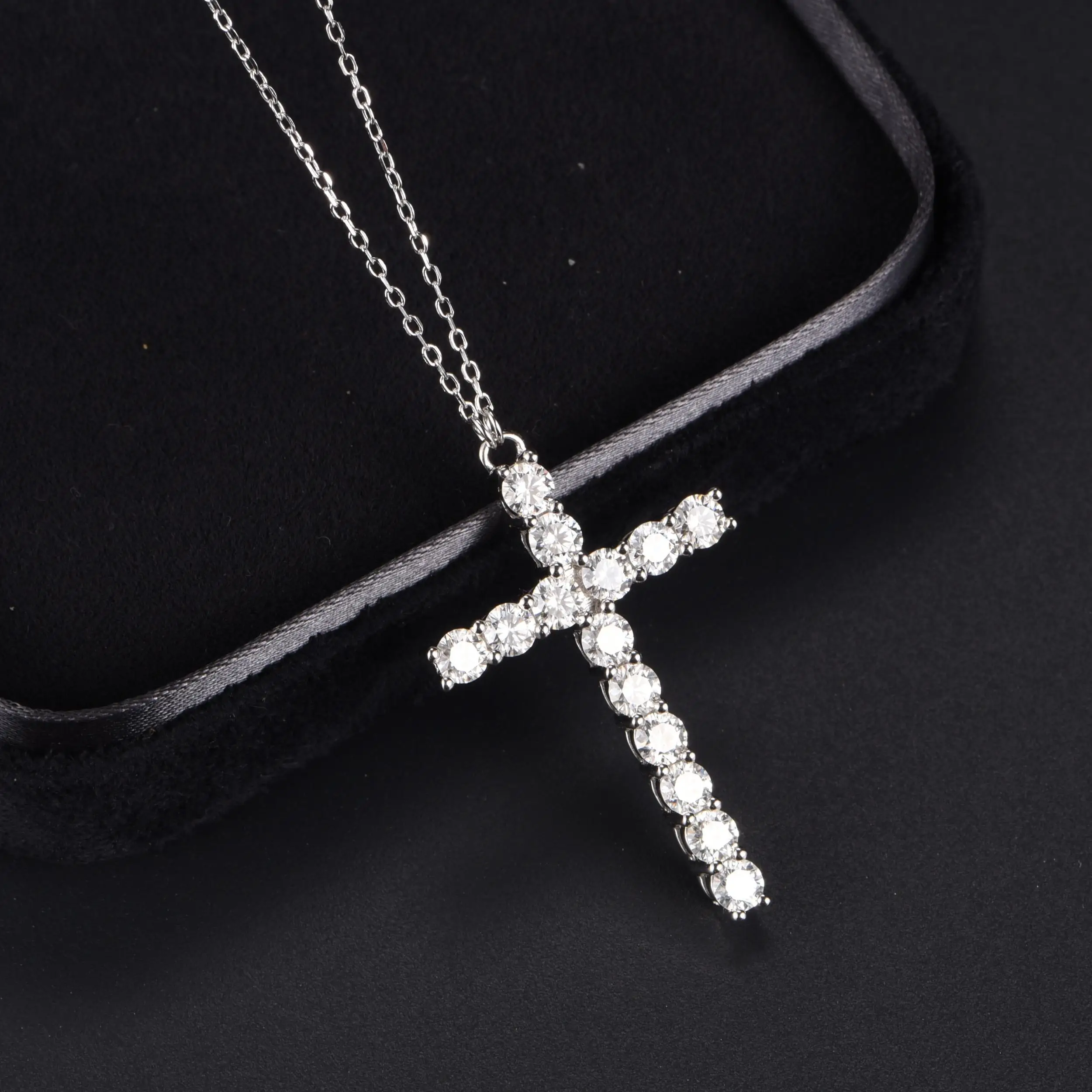 100% S925 Sterling Silver VVS Moissanite Cross Pendant