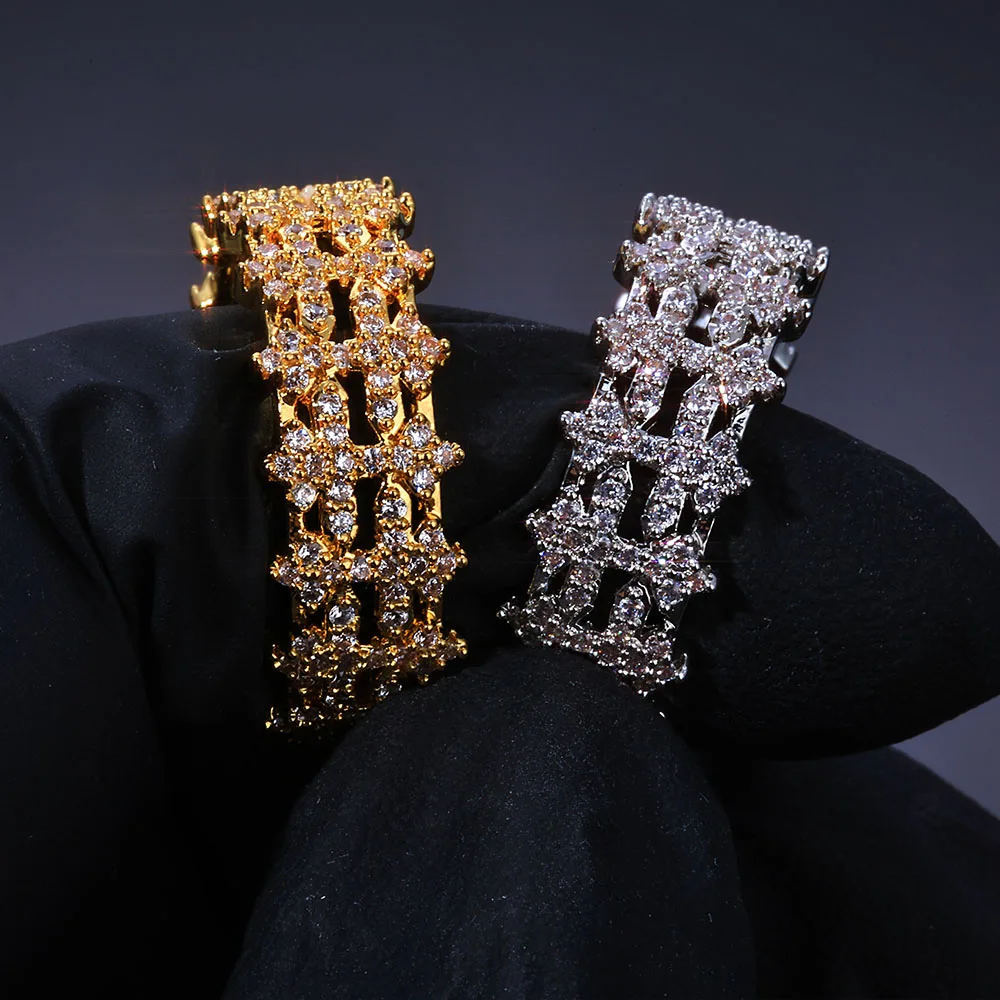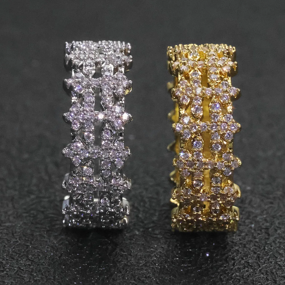 ESKEEM Cross Finger Ring Hip Hop Jewelry Ice Out Prong Setting AAAAA CZ Diamond Cuban Ring for Him Her