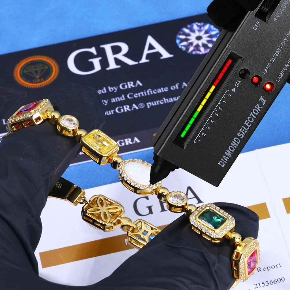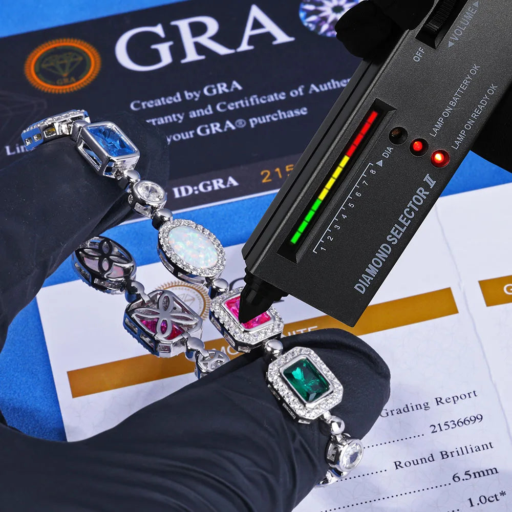 10MM 925 Silver+White Moissanite+Colorful Corundum+Opal Chain