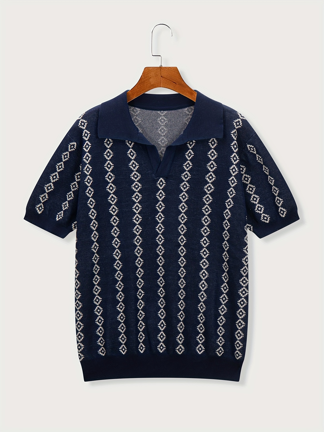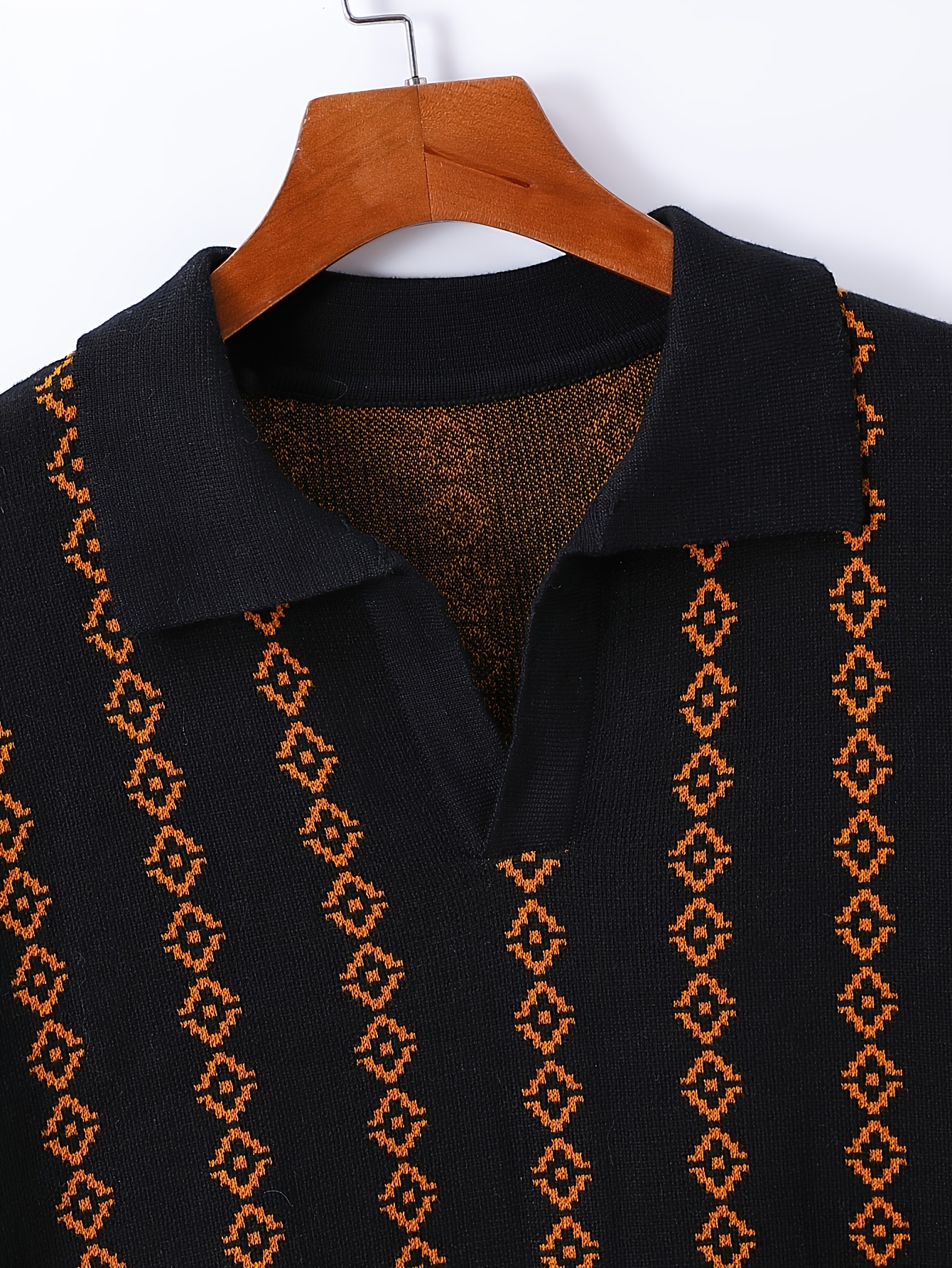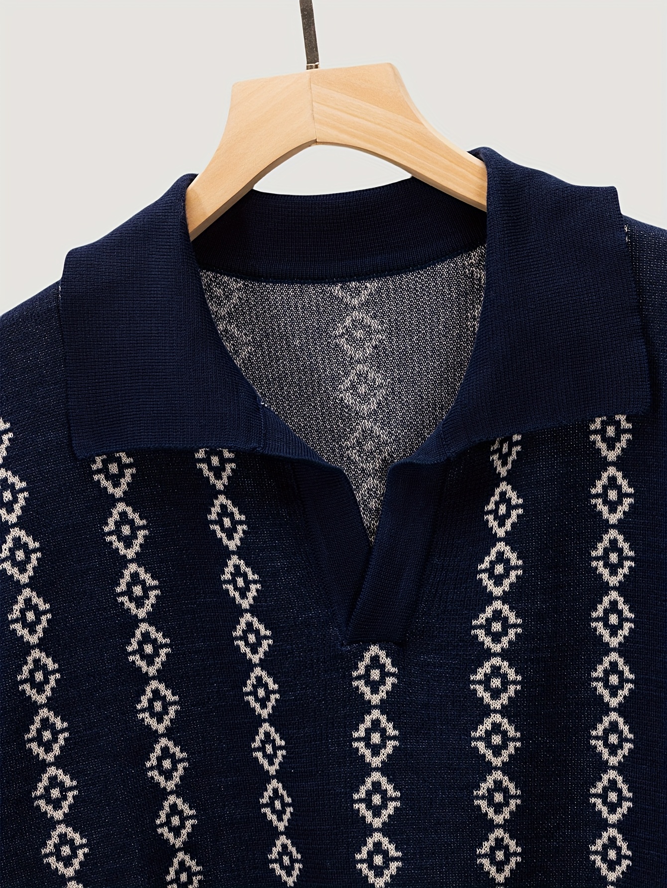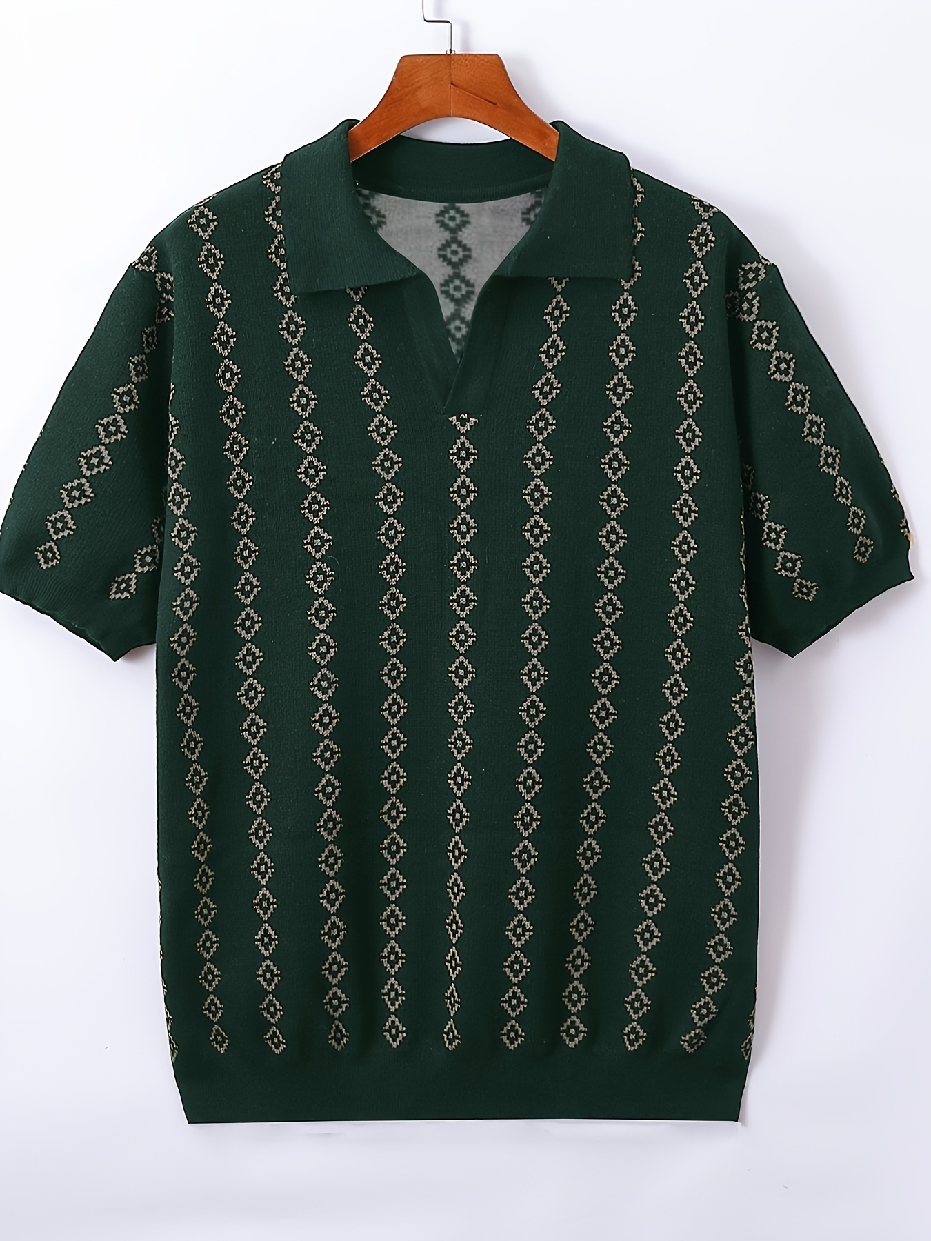 Men's Rhombus Patterns Short Sleeve Knit Sweater For Autumn And Winter