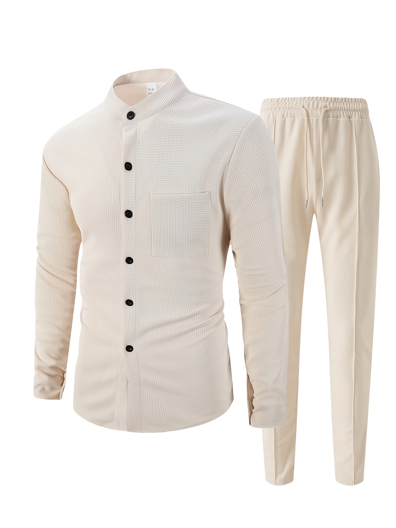 Men's Two-Piece Set with a Long-Sleeve Cardigan with Pockets