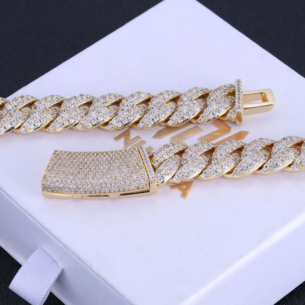 Material: cubic zirconia,Brass with Zircon Cuban Chain