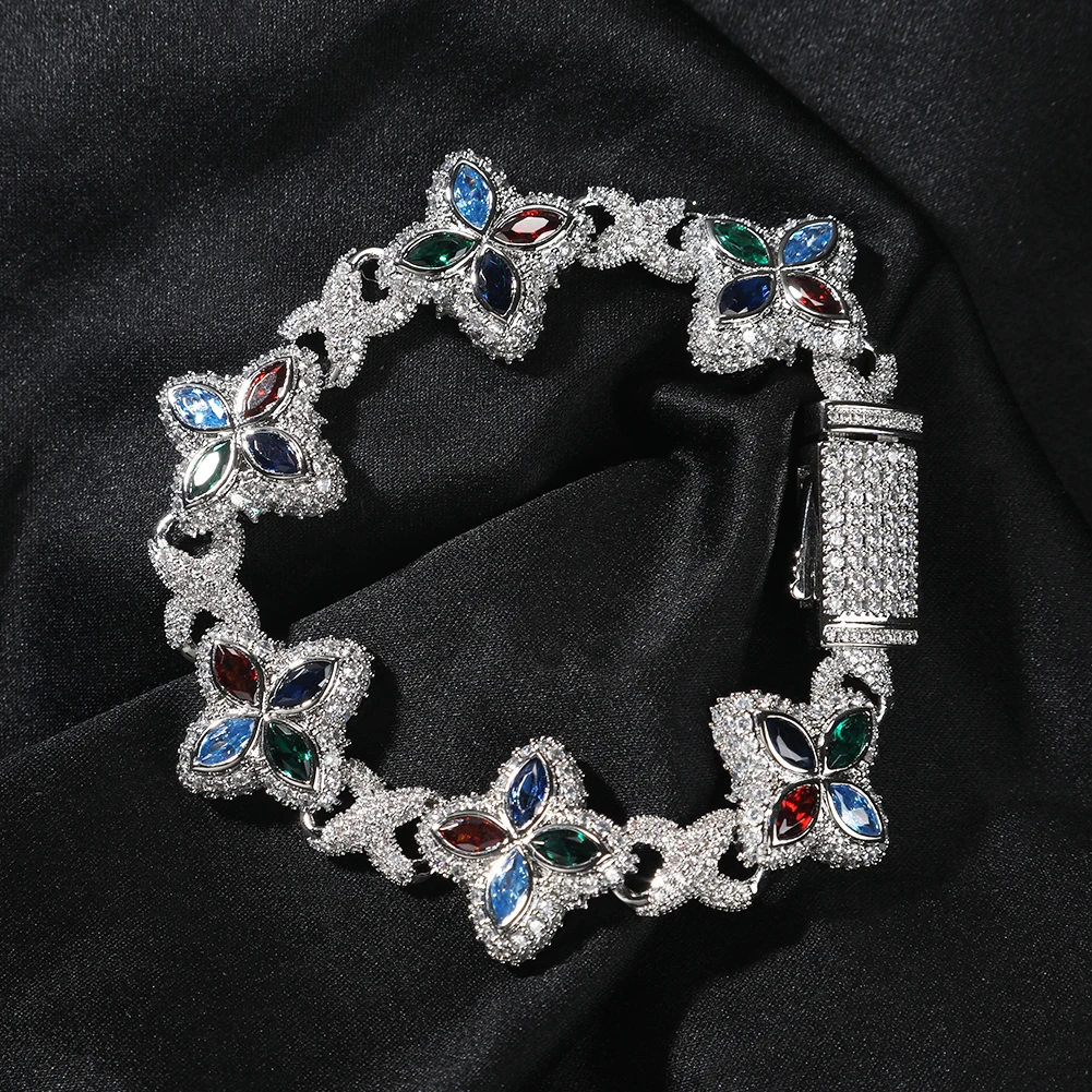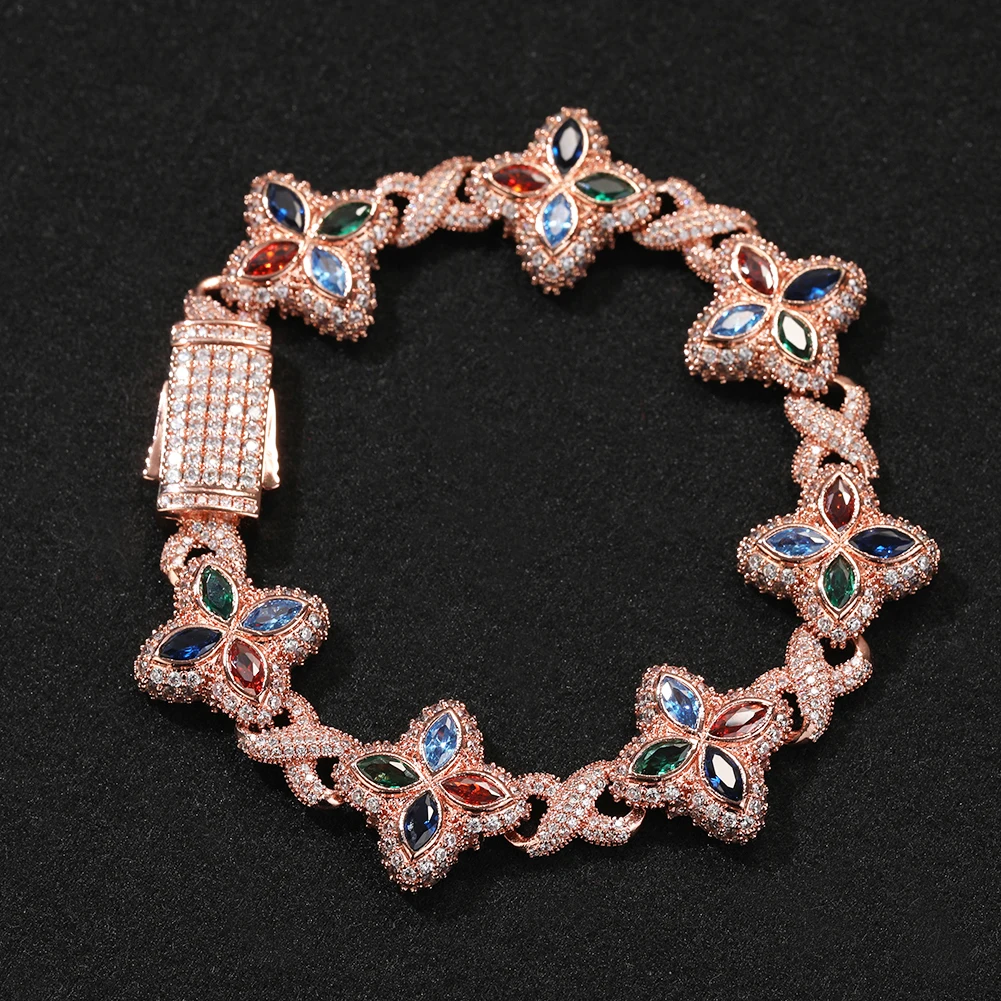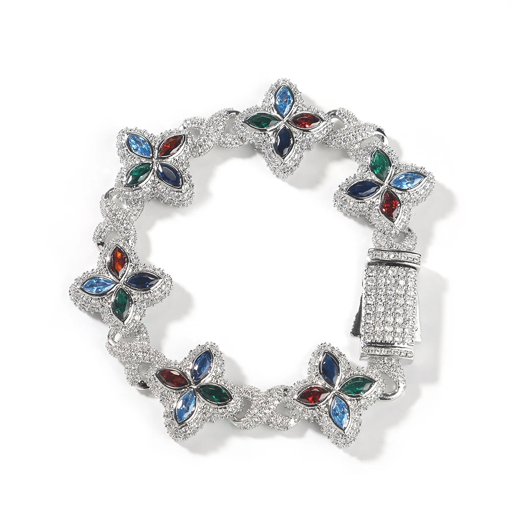 Multi Color CZ Floral Inifinity Chain Bracelet